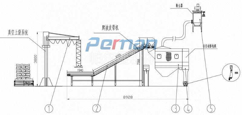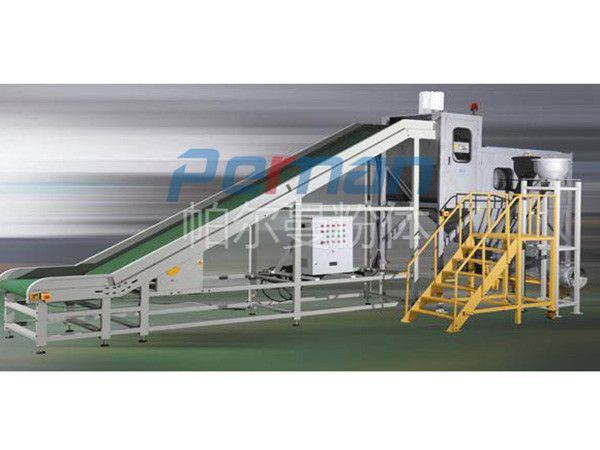 2、現(xiàn)場僅需一至兩人將包裝袋放置皮帶輸送機(jī)上即可,減輕了工人的作業(yè)強(qiáng)度。